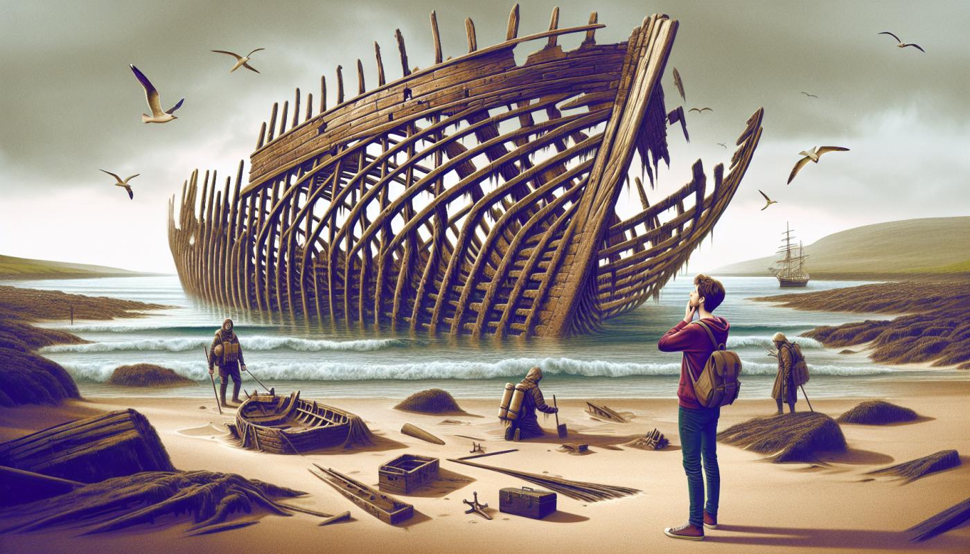 A schoolboy's chance encounter with wooden ribs protruding from a remote Scottish beach led to the identification of a 250-year-old shipwreck on Sanday, one of the Orkney Islands.