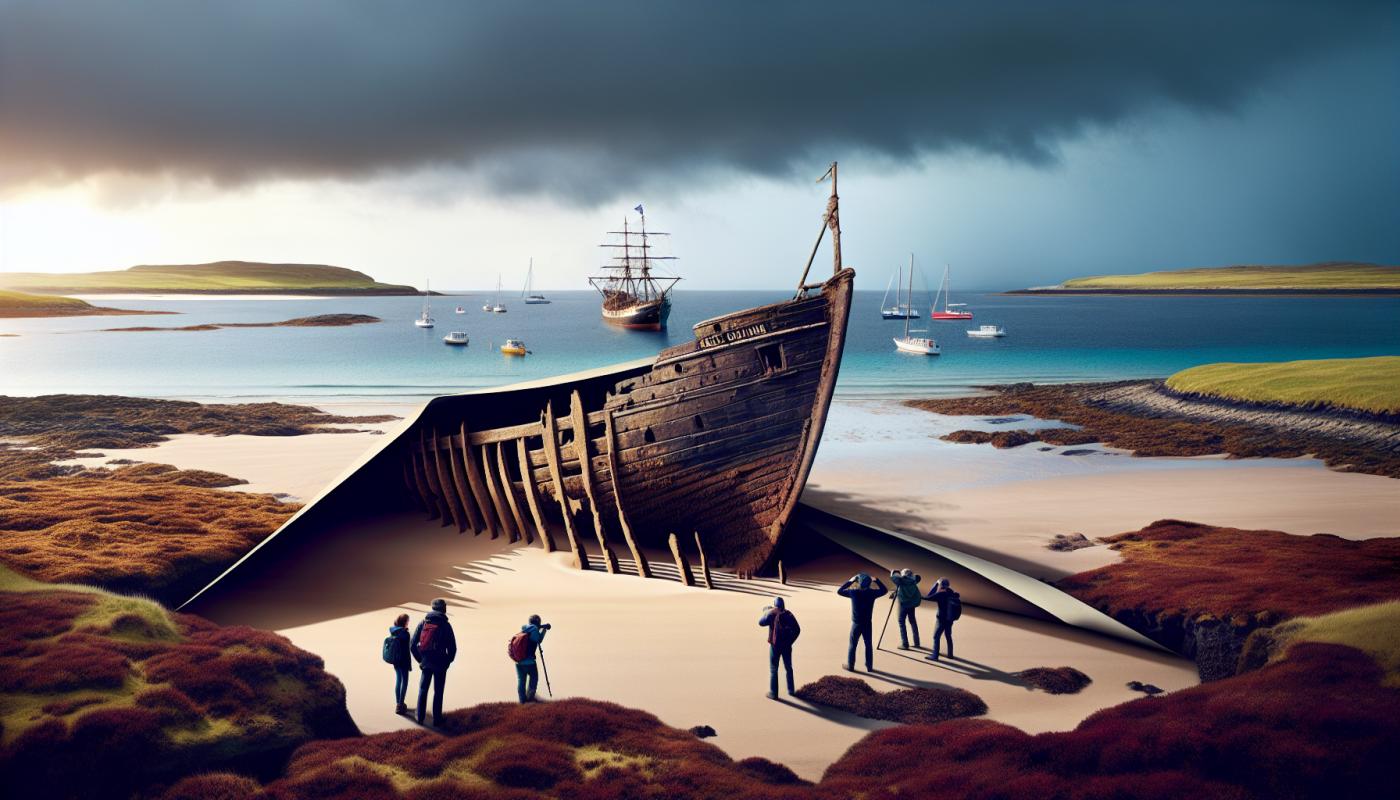 A schoolboy's chance encounter with wooden ribs protruding from a remote Scottish beach led to the identification of a 250-year-old shipwreck on Sanday, one of the Orkney Islands.