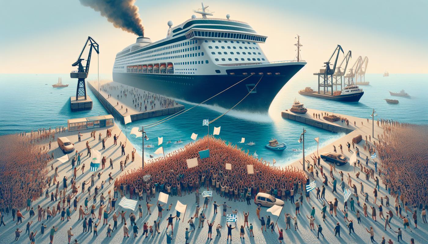 A cruise ship carrying around 1,600 Israeli tourists was prevented from allowing its passengers to disembark on the Greek island of Syros after being met by a large pro-Palestinian protest.