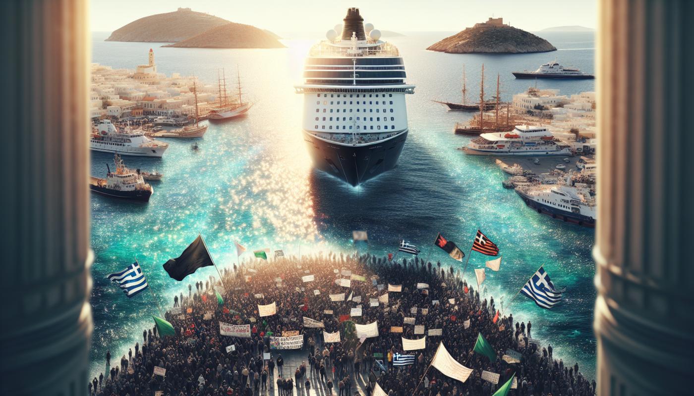 A cruise ship carrying around 1,600 Israeli tourists was prevented from docking at the Greek island of Syros after hundreds of pro-Palestinian protesters blocked the port.